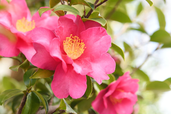 今年の冬は例年にも増して冷え込みが厳しく、朝の空気が一層きりりとしています。そんな中、庭の山茶花はこれ見よがしと赤い花で着飾っておしゃれしています。