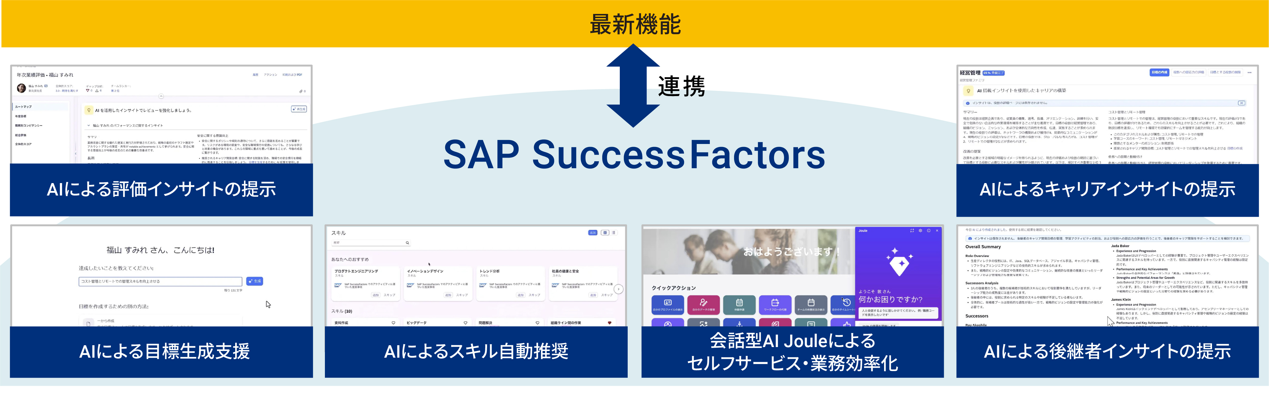 先進テクノロジー(AI、予測分析など)と連携することで、より高度で柔軟な人事シナリオが実現可能です。標準機能に加え、ニーズに応じた拡張と半期ごとのアップデートにより、将来にわたって変化する人材戦略にも柔軟に対応できます。